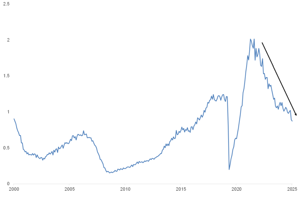 Figure 2: US labour demand softening – job openings to unemployed persons