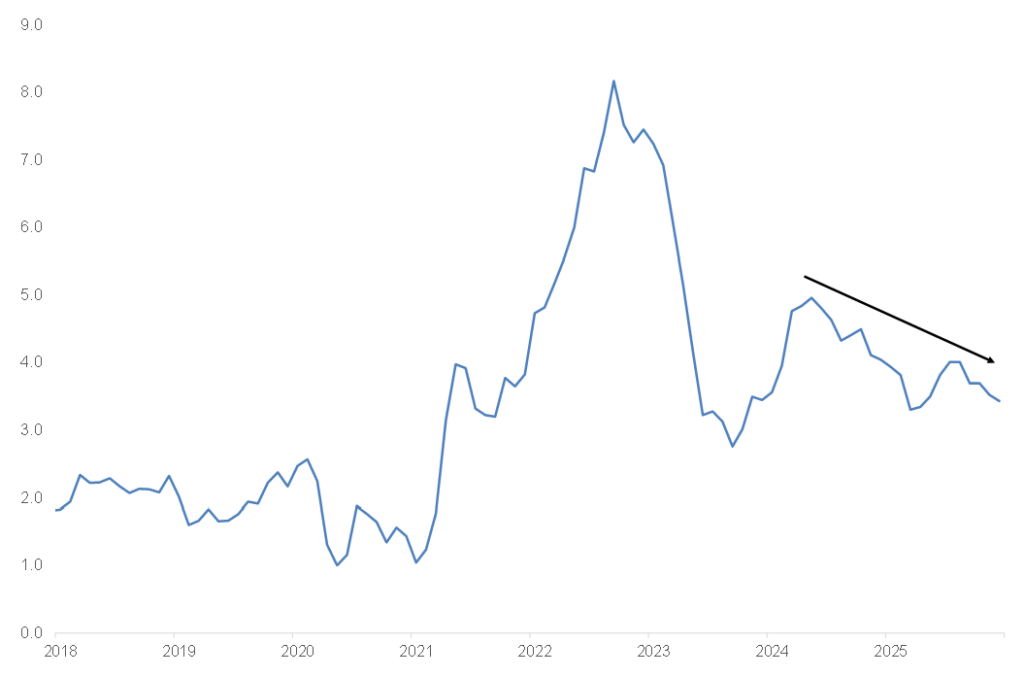 Overall, softer labour and housing markets, combined with fading tariff effects, are likely to continue exerting downward pressure on inflation. As tariff effects gradually fall out of the calculations in 2H26, we expect the whole core inflation basket to experience disinflationary pressures.