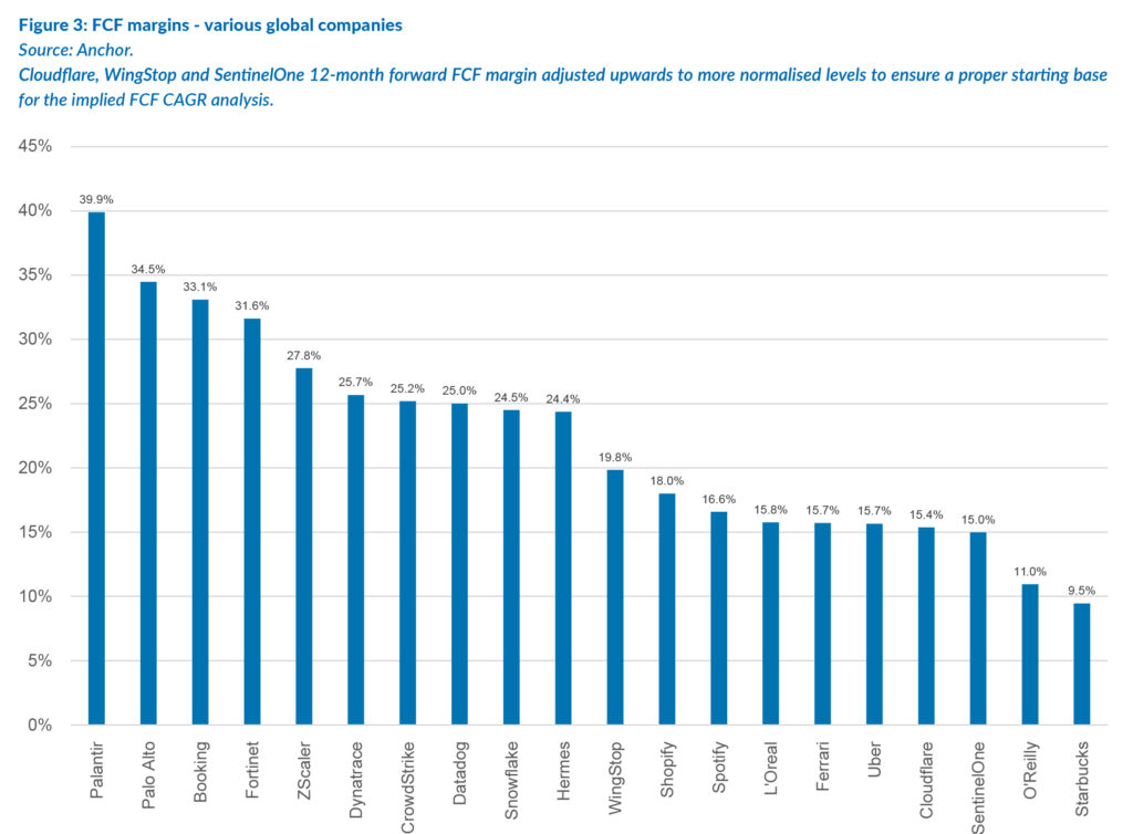 It is always good to read the implied FCF CAGRs against the actual FCF margins that the companies are currently achieving. If a company has a very low current FCF margin, it is potentially easier to grow that at a faster rate off that low base. However, quality companies would typically have higher FCF margins.