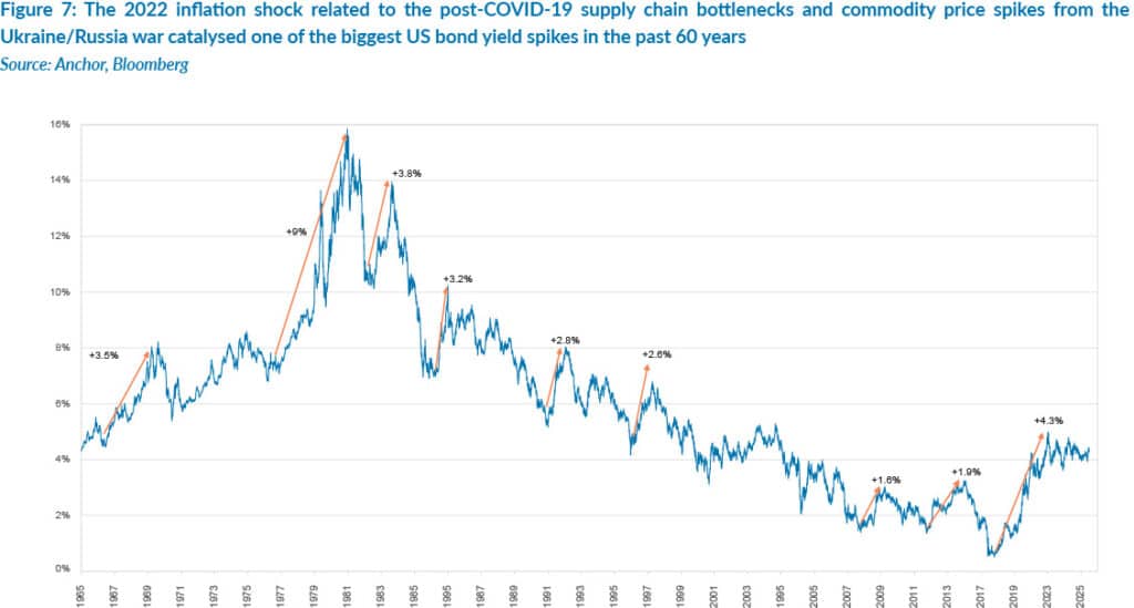 One of the most significant bond bear markets in the past 60 years occurred in 2022, driven by a sharp rise in inflation following post-COVID-19 supply chain bottlenecks, alongside surging commodity prices in the wake of Russia’s invasion of Ukraine.