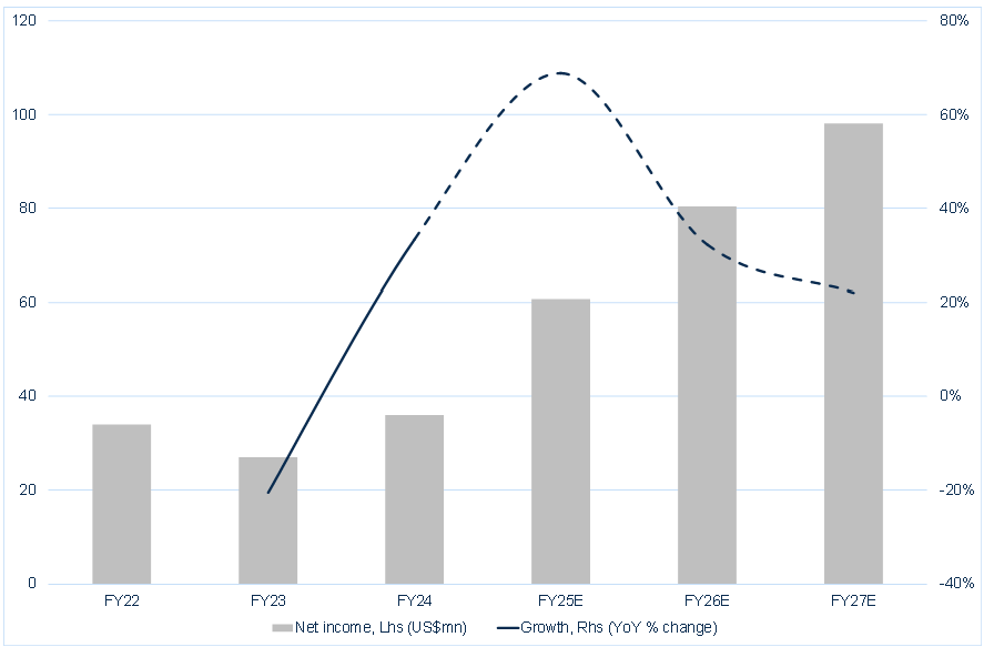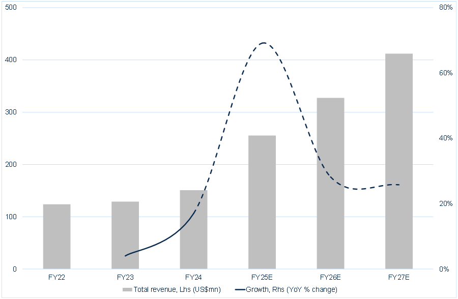 Momentum into 2026 is strong. Management has guided to above 50% revenue growth in FY25E and over 25% in FY26E, driven by deeper penetration of micro-financing products inside existing partner networks, alongside measured geographic expansion. FY25E marks a step-change because FY24 reflects a lower comparison base before the platform’s recent scale-up, while 1H25 has already shown accelerating volumes and an improving product mix.