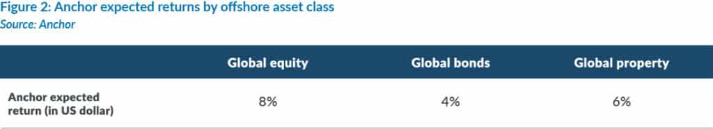Figure 1 below highlights the US dollar return outlook for the various global asset classes. The bars in Figure 1 represent the reasonable range of possible outcomes, with the dots indicating our estimated outcomes under various scenarios. All asset classes have attractive expected returns, though we find global equities to be the most appealing.