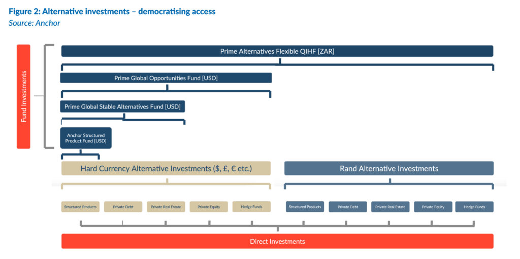 Alternative investments are a key focus area at Anchor Private Clients, with a strong competitive advantage in both its capability and offering. Alternative investments are generally defined as investments that fall outside the traditional categories of equities, bonds, and cash. This broad category includes a wide range of assets, each with its own strategy, risk profile, and return potential.